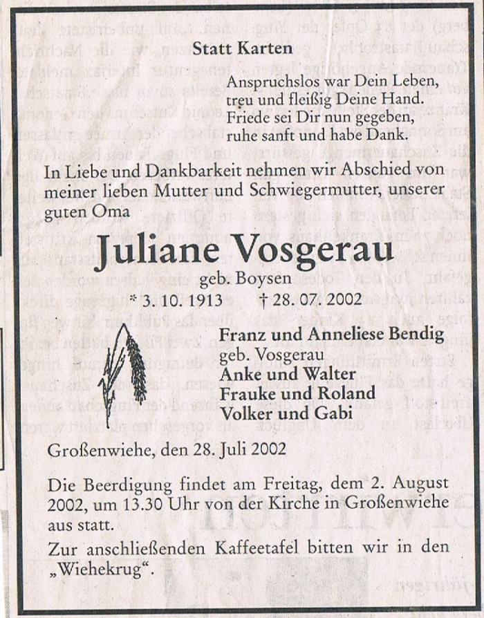 "Juliane Vosgerau" Kategorie: Zeitungen, 1355 mal angesehen